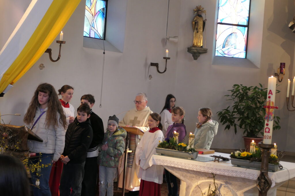 Döfering. Mit einem feierlichen und zugleich kindgerechten Familiengottesdienst beging die Pfarrei St. Ägidius in Döfering das Osterfest, das höchste Fest im Kirchenjahr. Zahlreiche Gläubige, darunter viele Familien mit Kindern, versammelten sich, um gemeinsam die Auferstehung Jesu zu feiern.