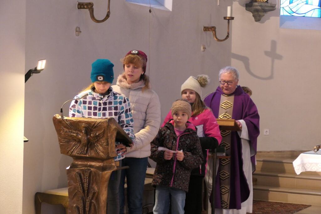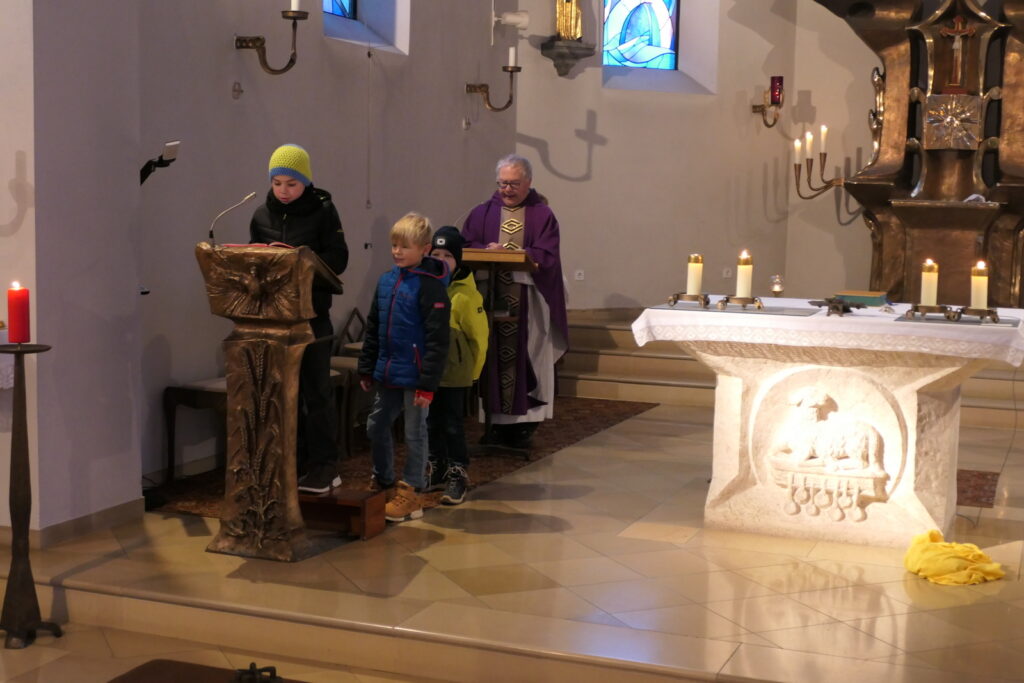Die Pfarrei Döfering feierte am 1. Advent einen stimmungsvollen Familiengottesdienst. Zu Beginn wurde die erste Kerze am Adventskranz entzündet – ein Zeichen für das Licht, das mit der Ankunft Christi in die Welt kommt.