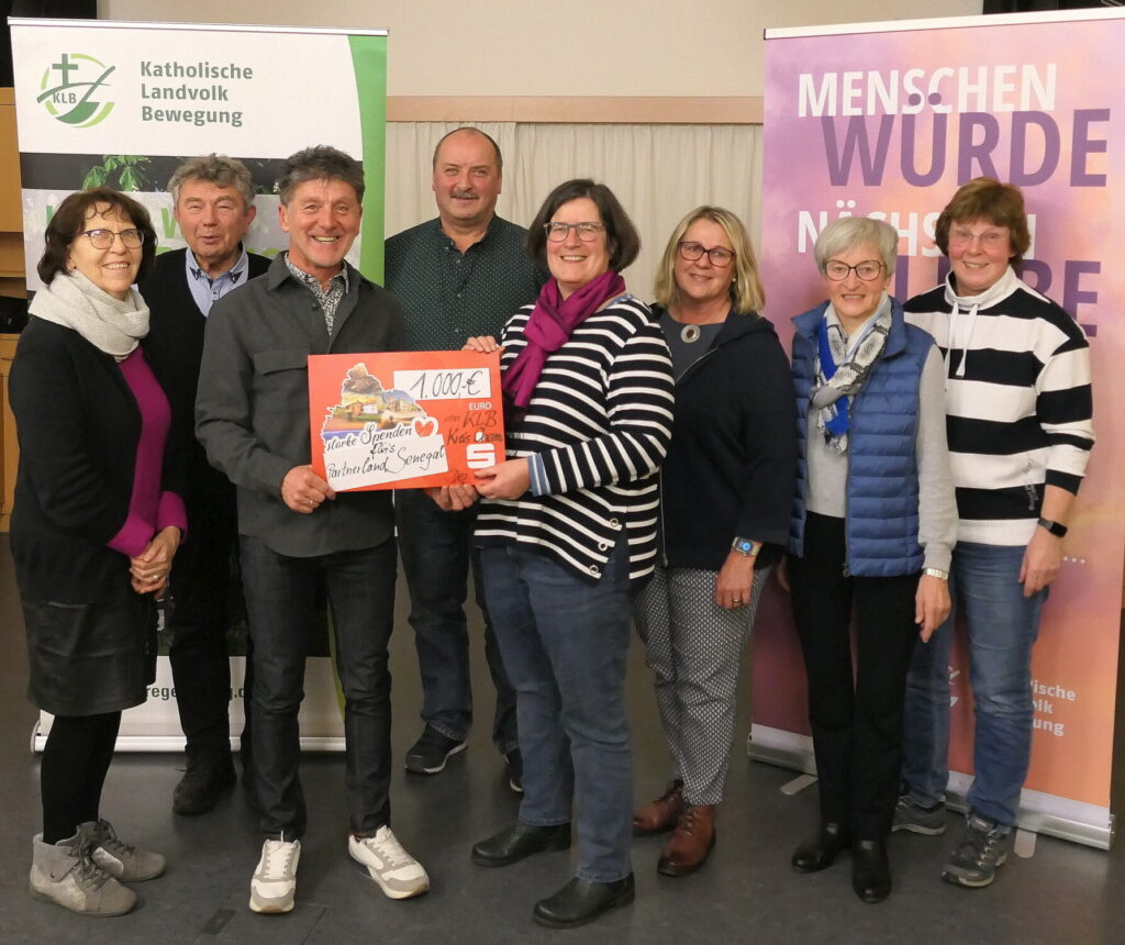 Ein besonderer Moment des Treffens war die Übergabe eines Spendenschecks in Höhe von 1.000 Euro an die Geschäftsführerin Maria Reitinger und den Diözesanvorsitzenden Hastreiter. Die KLB der Diözese Regensburg unterstützt seit Jahrzehnten Projekte im Partnerland Senegal. Mit den Spenden werden dort Garten-, Brunnenbau- und Imkereiprojekte in Zusammenarbeit mit dem Bundesministerium für wirtschaftliche Zusammenarbeit (BMZ) gefördert, um den Menschen vor Ort nachhaltige Bleibeperspektiven zu ermöglichen.
