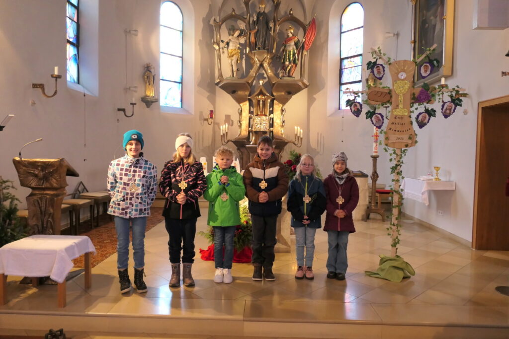 Zum Abschluss erhielten die Kinder ein Kreuz, das sie bei ihrer Erstkommunion tragen werden. Dieses Geschenk der Pfarrei wurde ihnen von ihren Eltern überreicht – ein sichtbares Zeichen des Glaubens, das sie auf ihrem weiteren Weg begleiten soll.